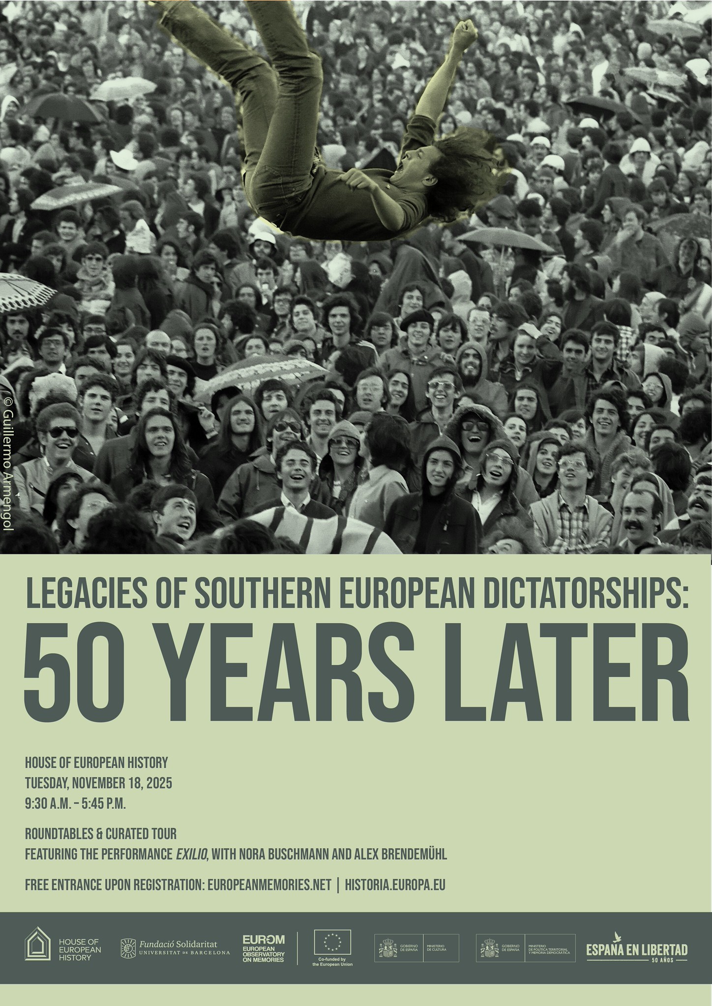 Cet événement est organisé conjointement par l’Observatoire européen des mémoires (EUROM), la Maison de l’histoire européenne, le ministère espagnol de la Politique territoriale et de la Mémoire démocratique, ainsi que le ministère de la Culture, dans le cadre de la commémoration « L’Espagne en liberté. 50 ans". Sigfrido Ramirez Perez et Victor Fernandez Soriano y participent.